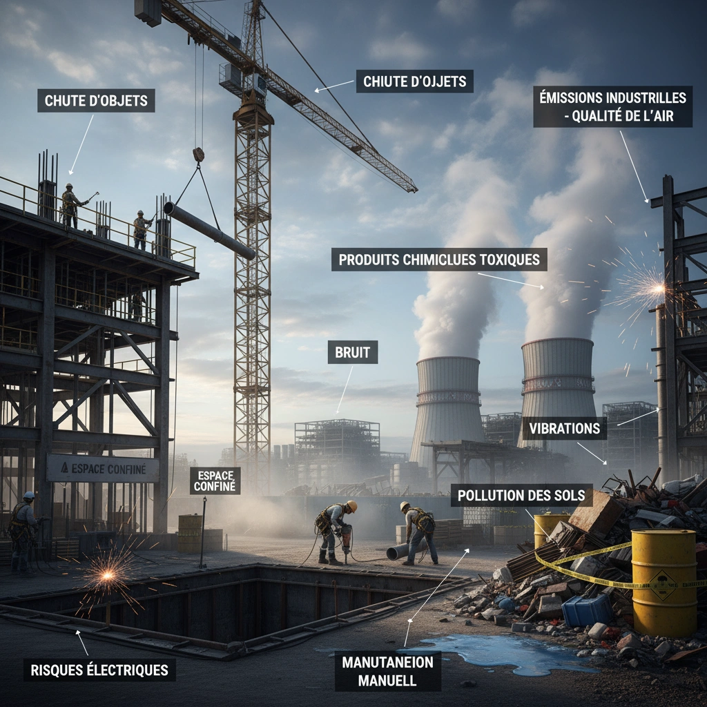 En construction industrielle, ces exigences sont d’autant plus cruciales que les chantiers regroupent plusieurs métiers, équipements lourds et zones sensibles.